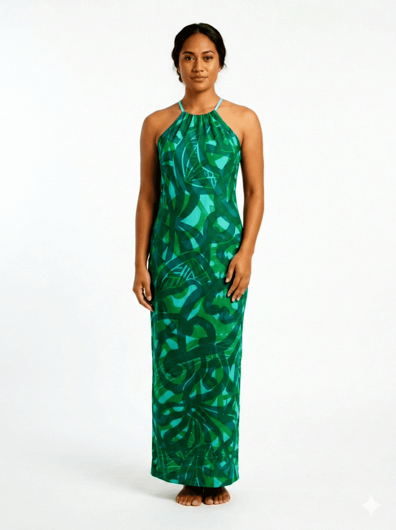 ELEI LONG DRESS HALTER TEAL – with two-tone Green and Blue Elei size-8