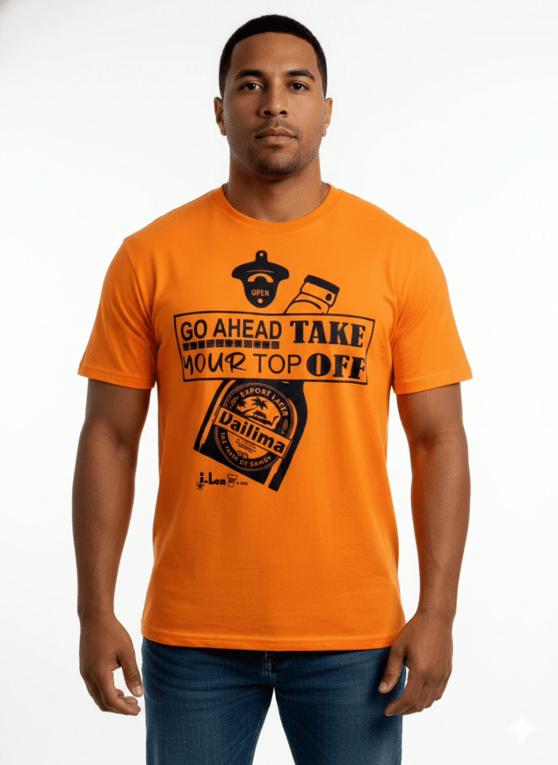 BEER TAKE YOUR TOP OFF VAILIMA funny shirt design- Black silk screen on shirt